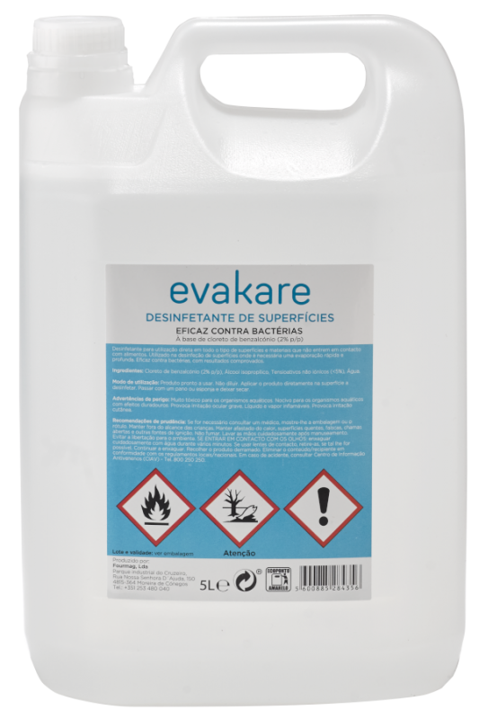 Desinfetante para utilização direta em todo o tipo de superfície materiais que não entrem em contacto com alimentos. Utilizado na desinfeção de superfícies onde é necessária uma evaporação rápida e profunda. Eficaz contra bactérias e vírus, com resultados comprovados.